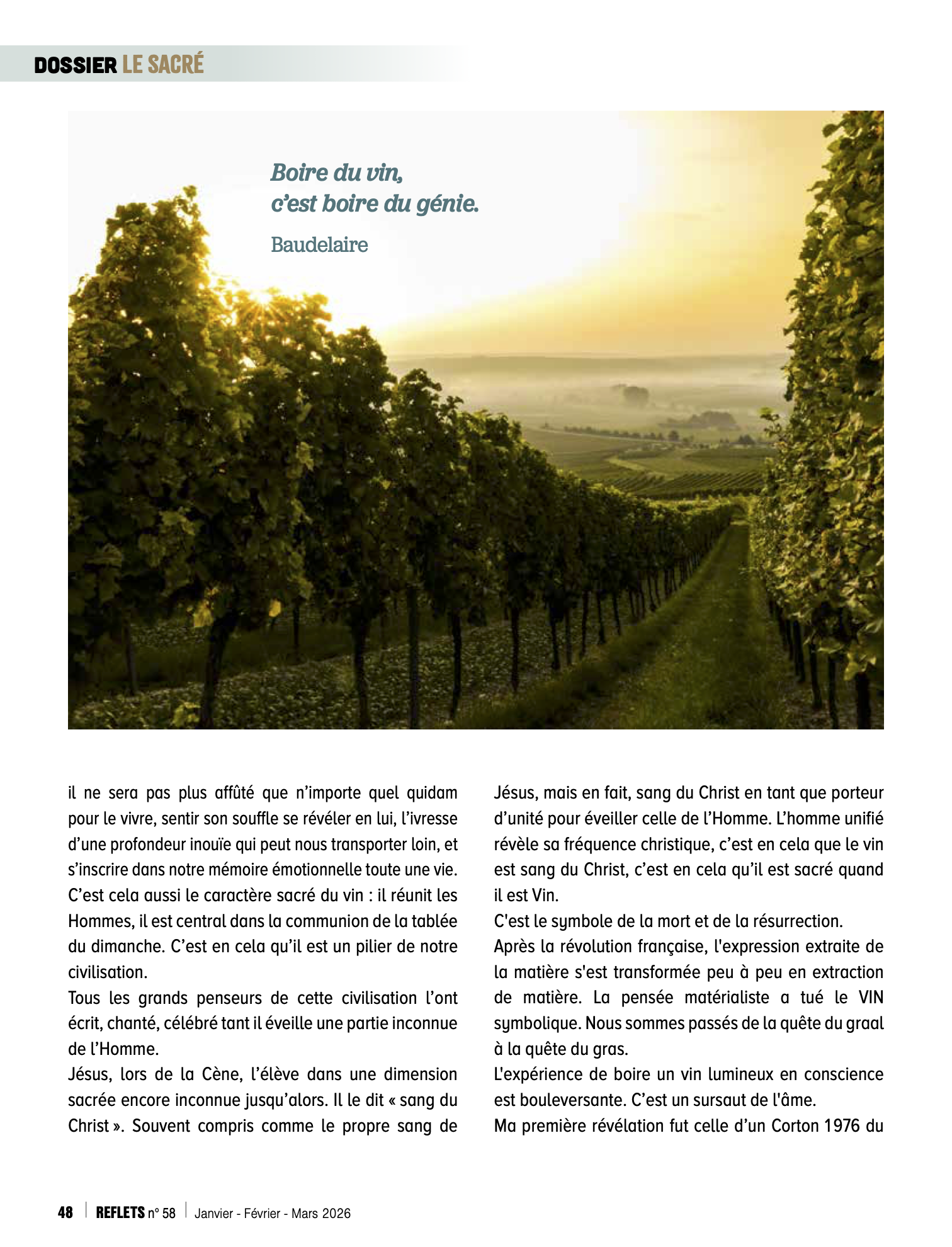 Où le vin nous emmène-t-il ? Que produit-il en nous ? Il est un produit proche du religieux et du sacré, mais dont la compréhension semble souvent inaccessible… Rencontre avec Bruno Quenioux, caviste et Chevalier de l’Ordre des Arts et des Lettres
